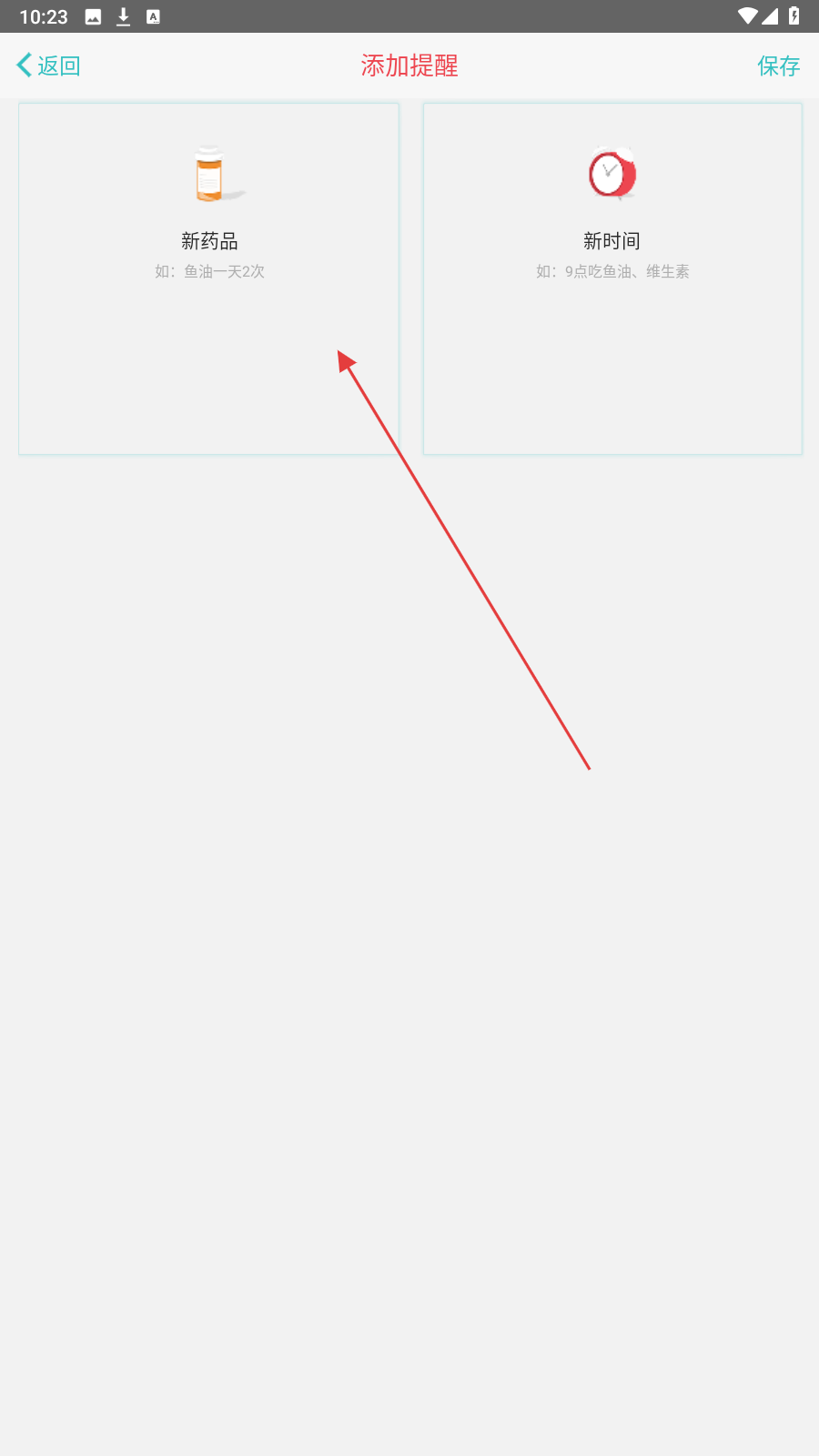 2、在【添加提醒】页,选择【新药品】板块,进入药品信息填写环节。