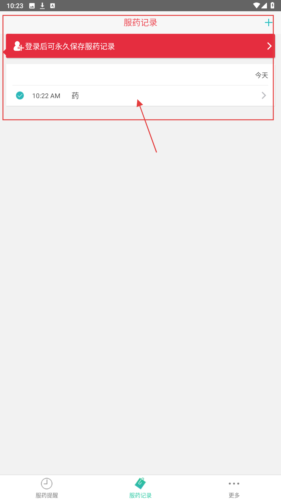 4、切换到【服药记录】页,可查看已设置的服药记录,登录后能永久保存记录。