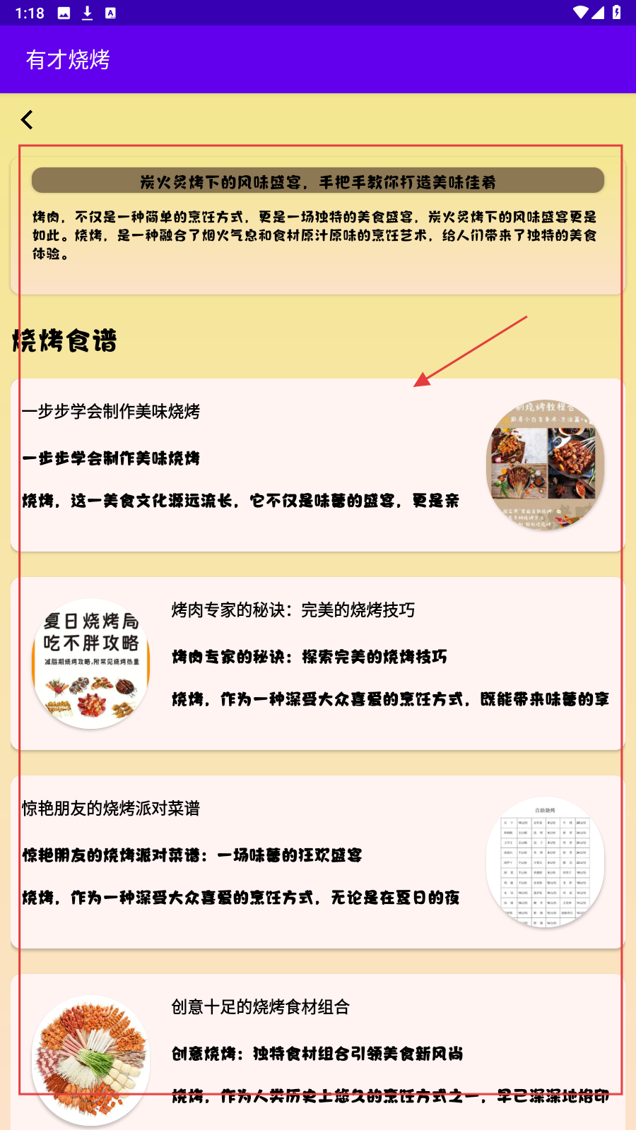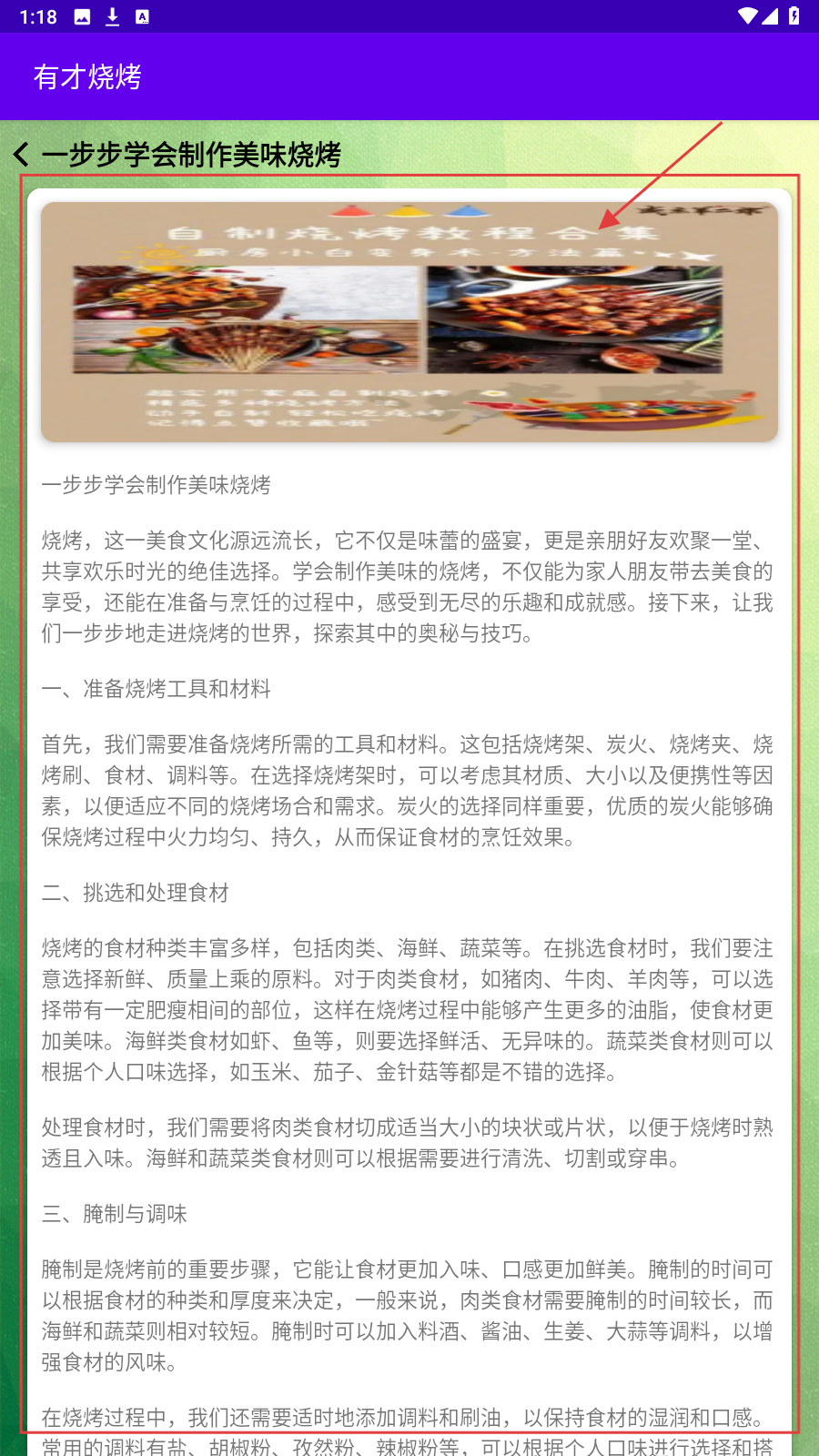 2、点选感兴趣的食谱,如【一步步学会制作美味烧烤】,查看详细制作步骤。