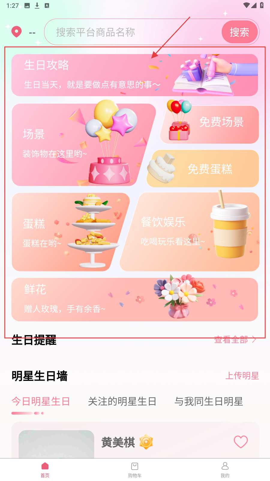 3、礼品一站采购:整合周边优质蛋糕店、花店等资源,提供多样礼品选择,支持在线下单与配送,简化生日准备流程。