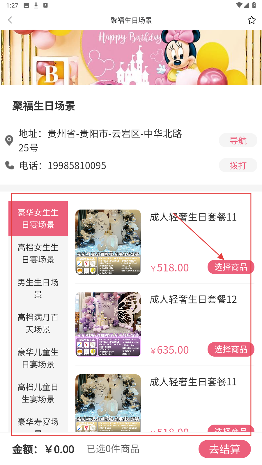 3、选想购买的套餐,如【成人轻奢生日套餐11】,点【选择商品】。