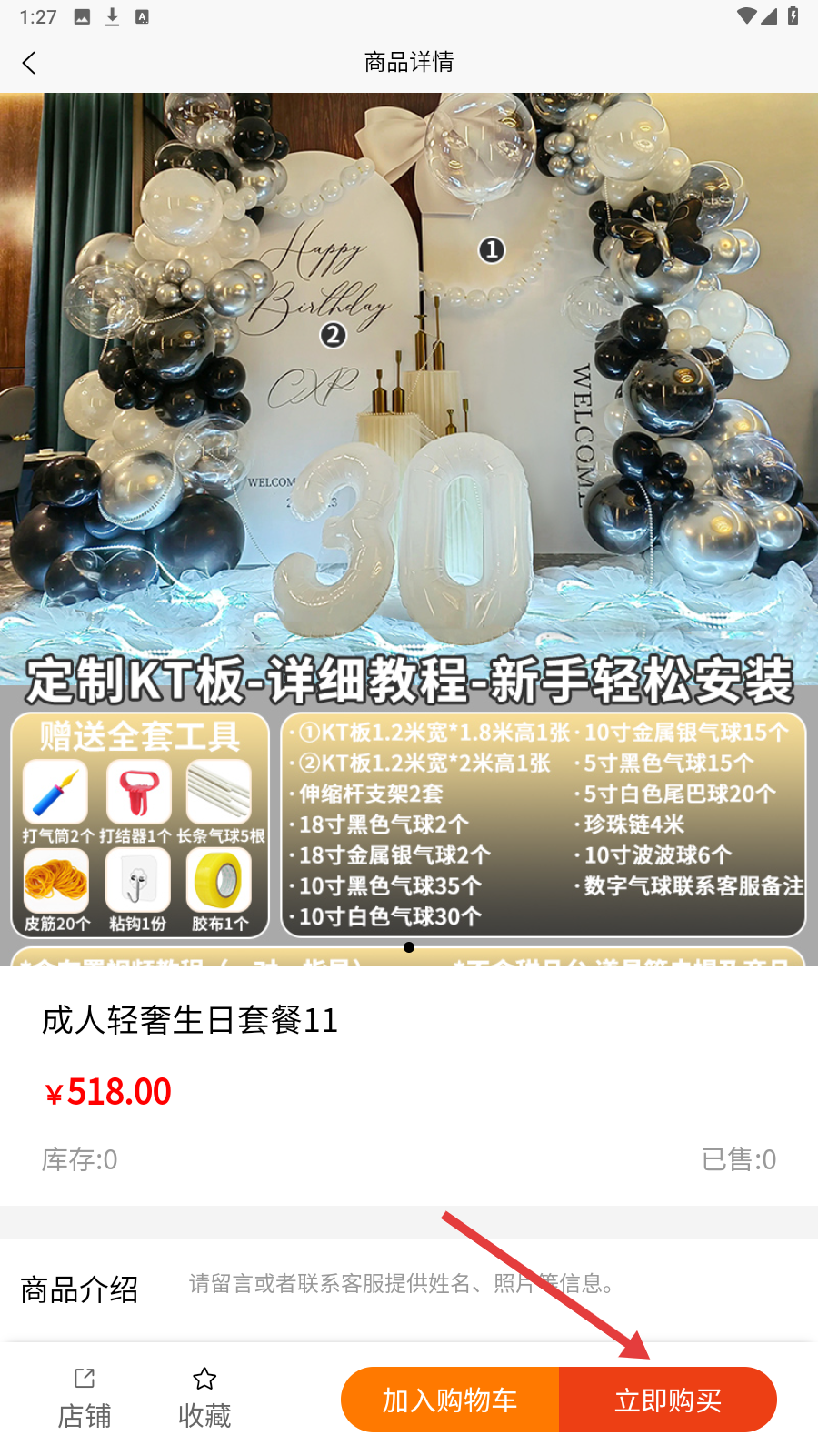 4、进入商品详情页,确认信息后点【立即购买】,完成生日场景采购。