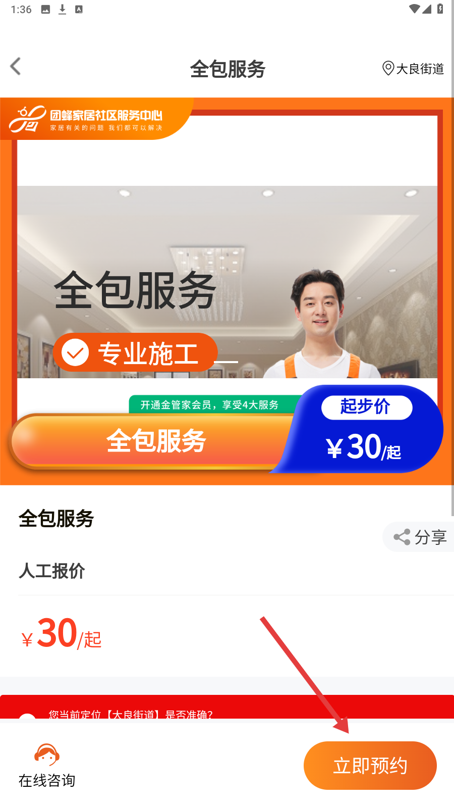4、确认服务信息后,点【立即预约】,完成家居服务预约。