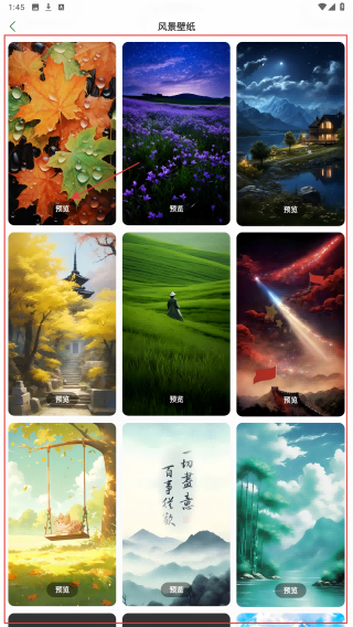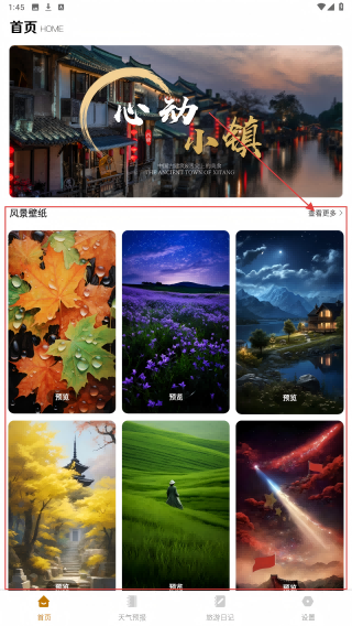 1、在首页点【风景壁纸】旁【查看更多】,进入壁纸列表选喜欢的。