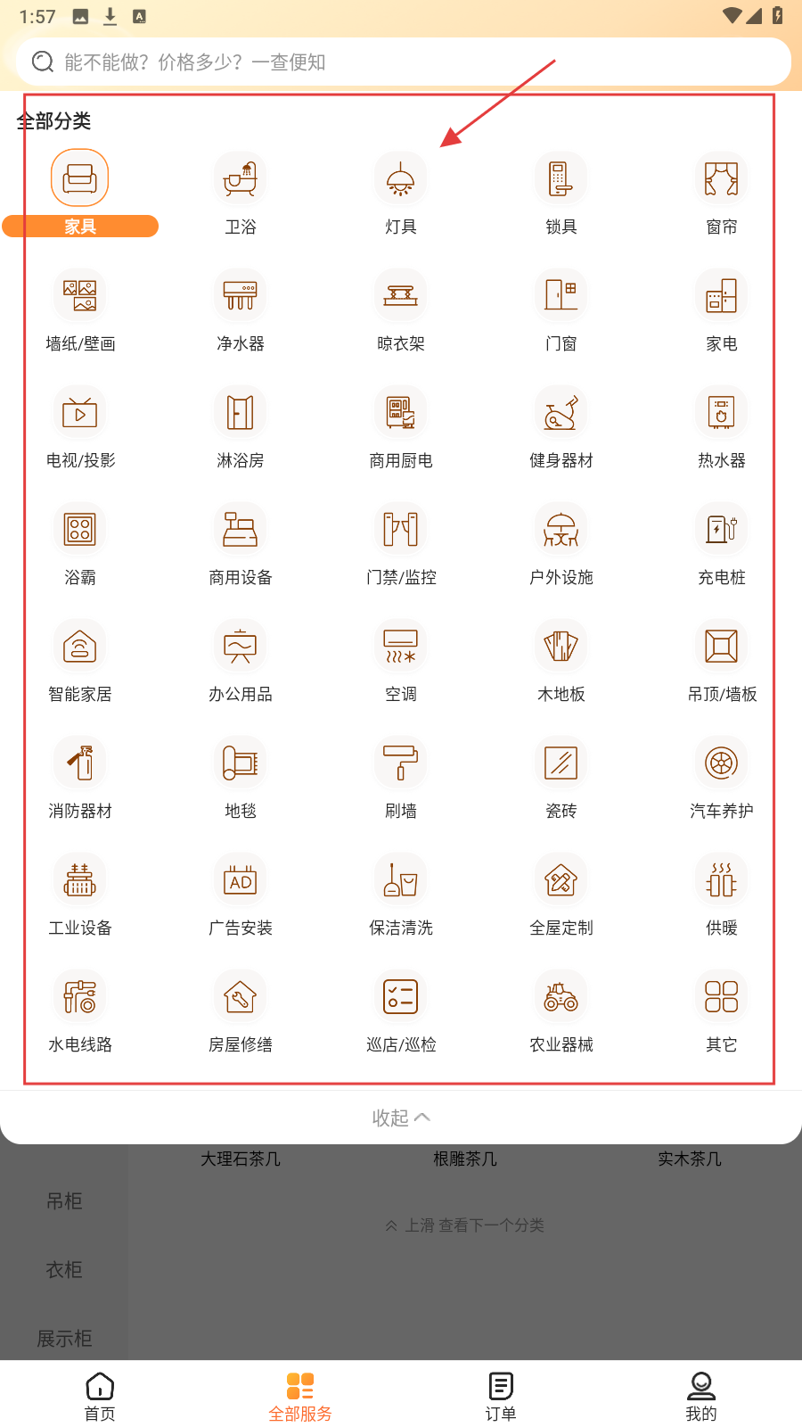 1、进入界面,选心仪服务类型,像【上门安装】,开启服务查找流程。
