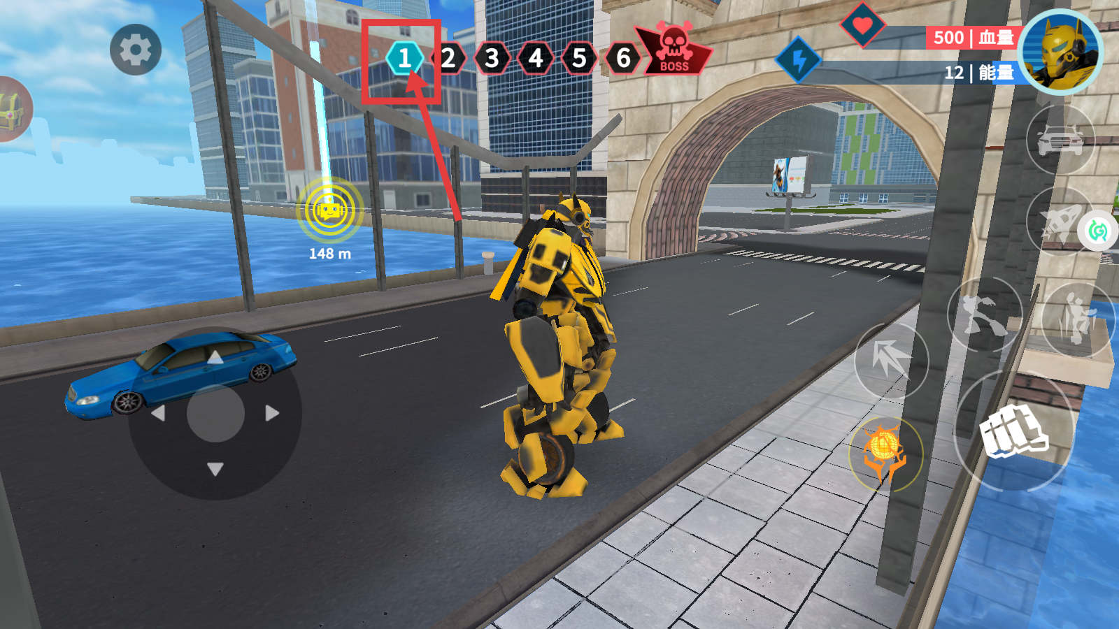 3、遭遇敌方机甲时,点击右下角【拳头】图标,发动近战攻击,快速清敌。