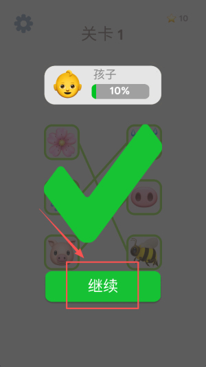 3、将所有正确的配对连接后,点击“继续”按钮。