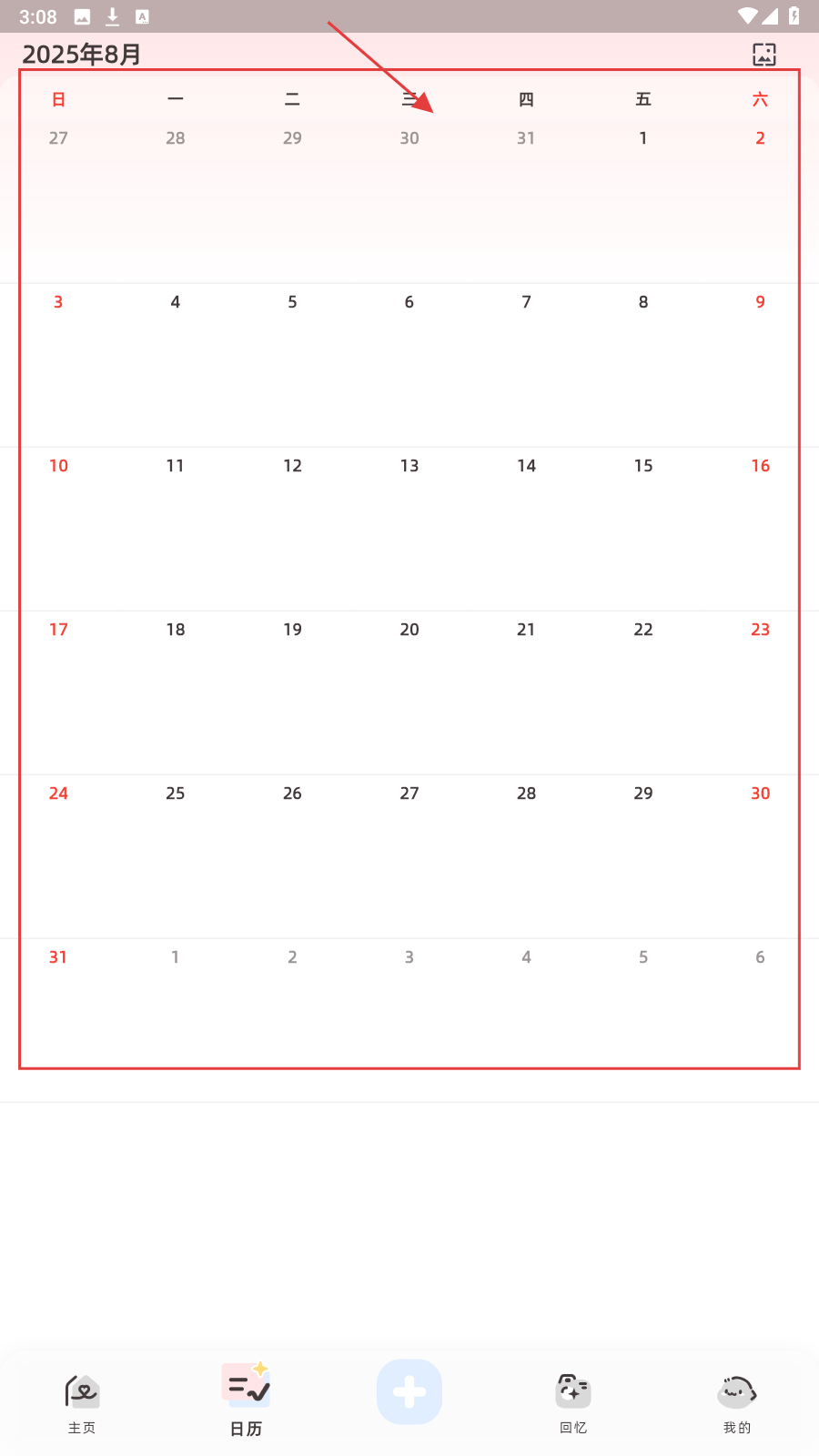 3、切换到【日历】页,查看2025年8月日历,选定要操作的日期。
