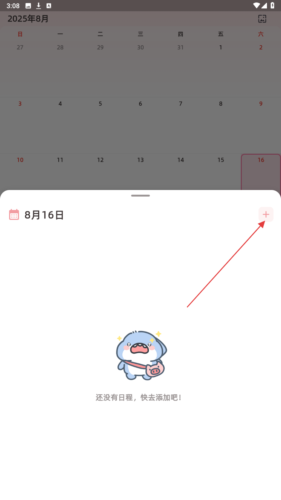 4、点击日期旁【+】,添加当日日程,规划每日安排。