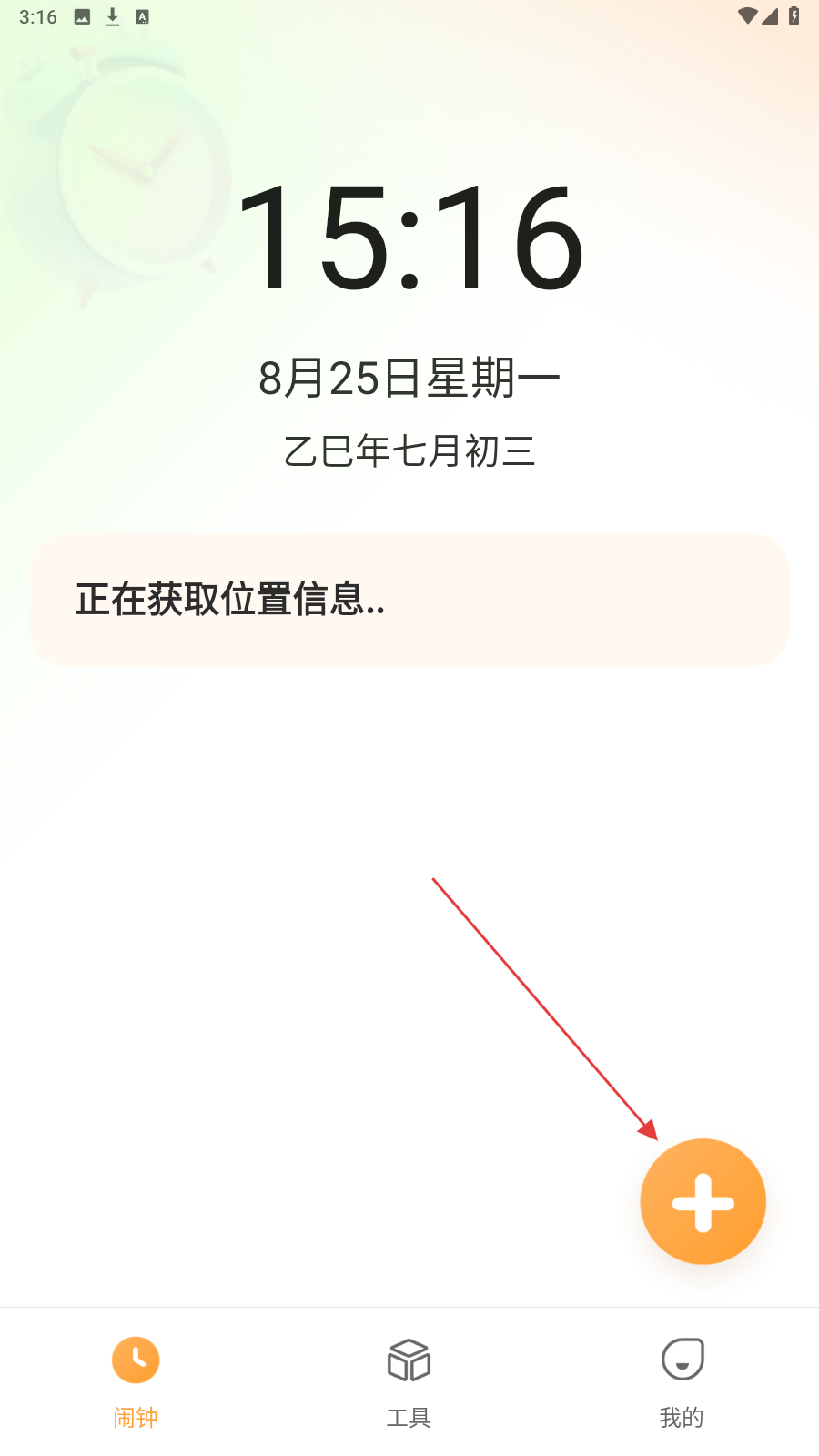1、进入闹钟页面,点击右下角橙色【+】,开启闹钟设置流程。