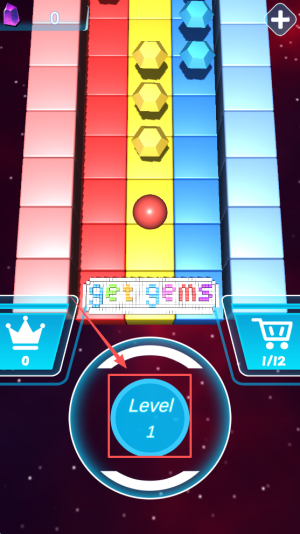 2、在游戏过程中,点击并拖动红色球体,避开障碍物并收集宝石。