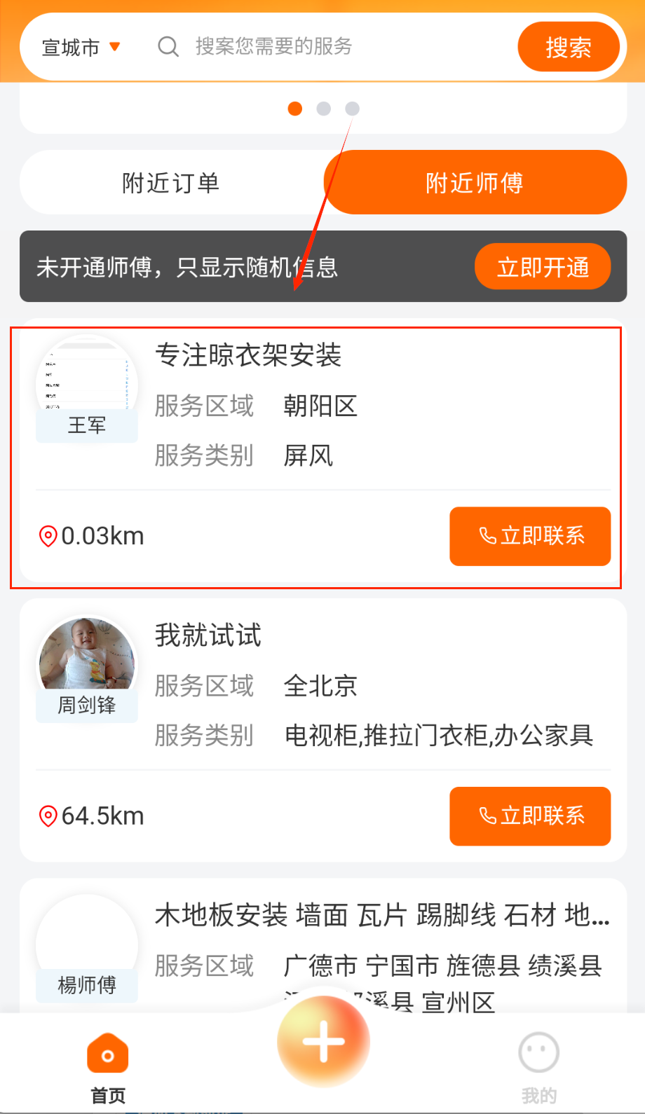 1、打开应用后允许定位权限获取当前位置,系统自动展示周边3公里内可提供服务师傅列表,按服务类型与评分排序筛选合适人选。