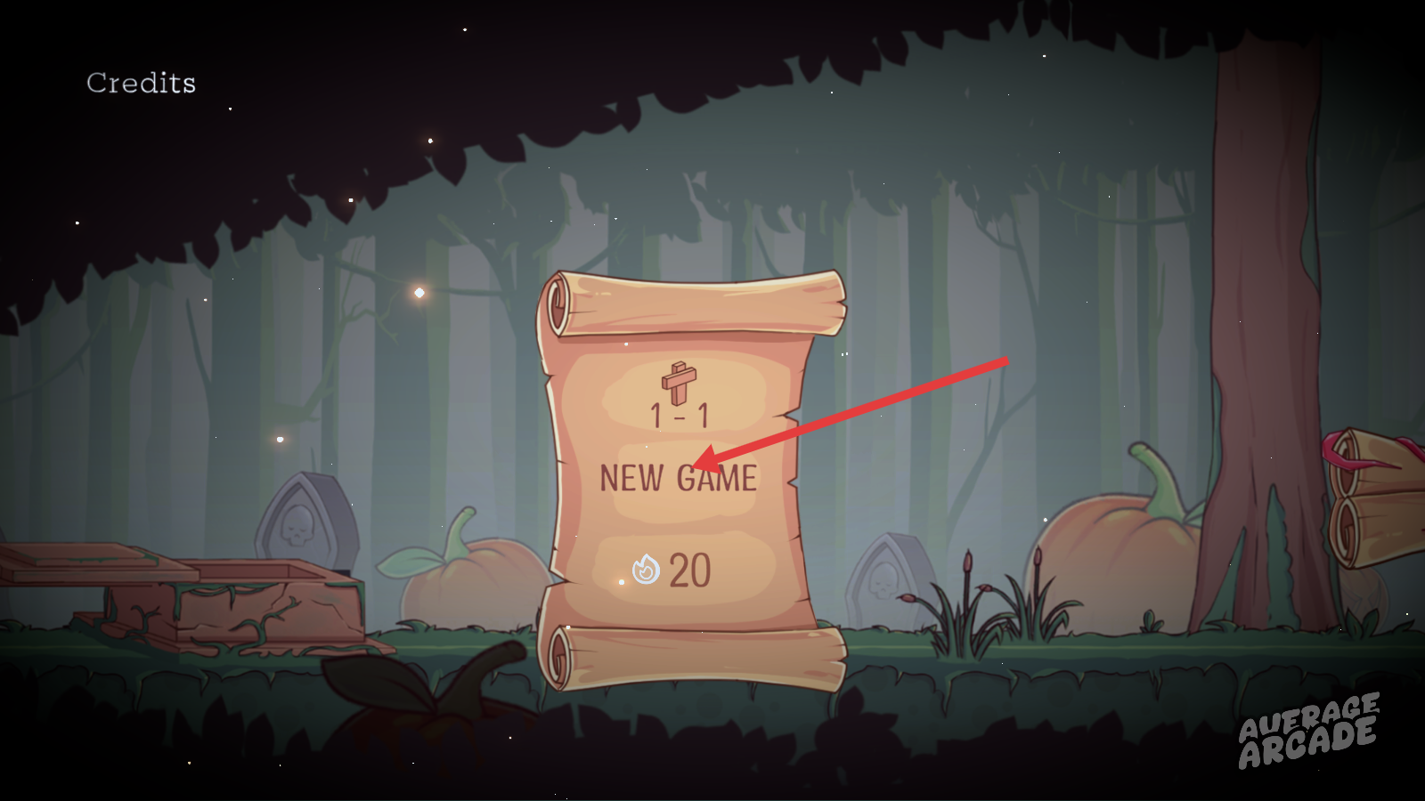 1、开局点击【NEW-GAME】进入【1-1】关卡,踏入森林场景,开启冒险之旅,留意界面信息。