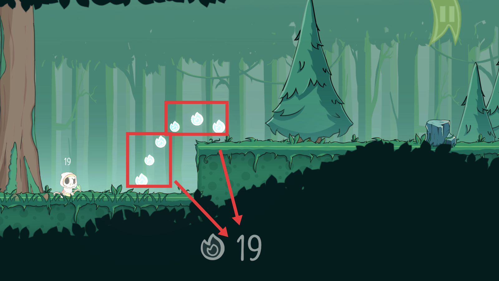 3、探索场景时拾取【蓝色火焰】道具,底部火焰数从【20】变为【19】,积累资源助力冒险。
