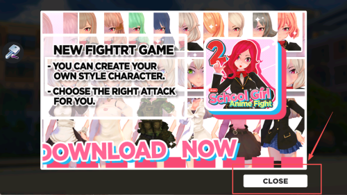 2、回到主界面点击“CLOSE”跳过宣传图直接进入游戏。