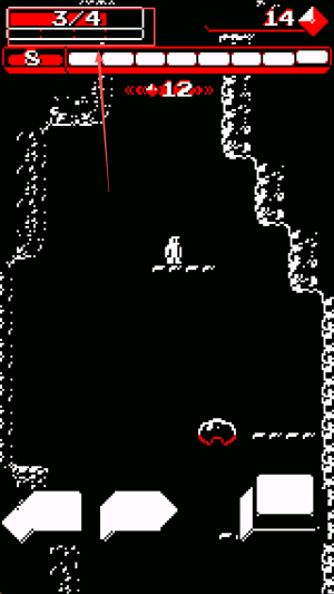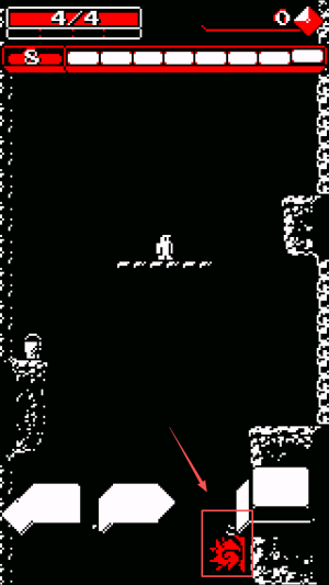 2、操控角色下落:控制小男孩在井下逐层下落,借助枪靴攻击怪物或缓冲下落速度,避开怪物攻击,防止游戏失败。