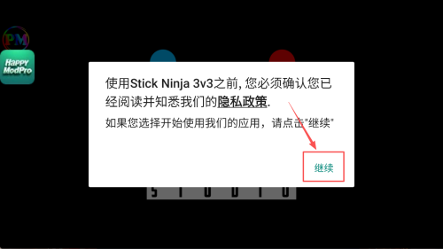2、在隐私政策弹窗点击“继续”,同意后即可进入游戏。