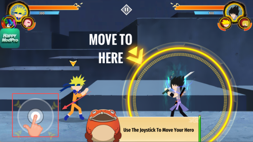 4、在“Use The Joystick To Move Your Hero”提示下,拖动左侧摇杆移动角色,完成新手教程。