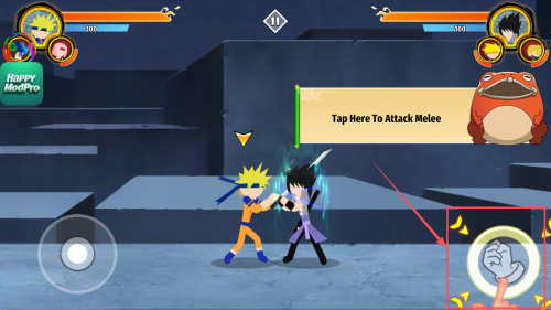 1、在战斗提示“Tap Here To Attack Melee”处轻点屏幕,完成首次近战攻击。
