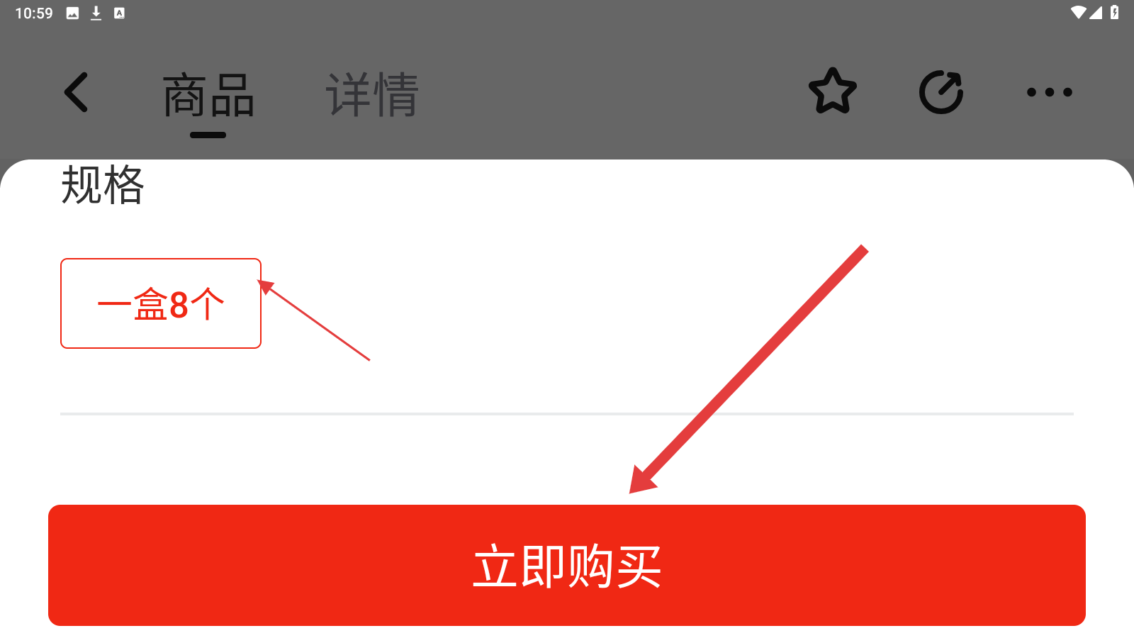 3、选规格【一盒8个】,再次点【立即购买】,即可下单购买。