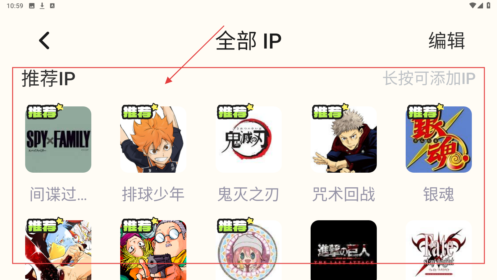 4、还可以切换到【全部IP】页,从推荐IP里选喜欢的动漫,探索相关周边。