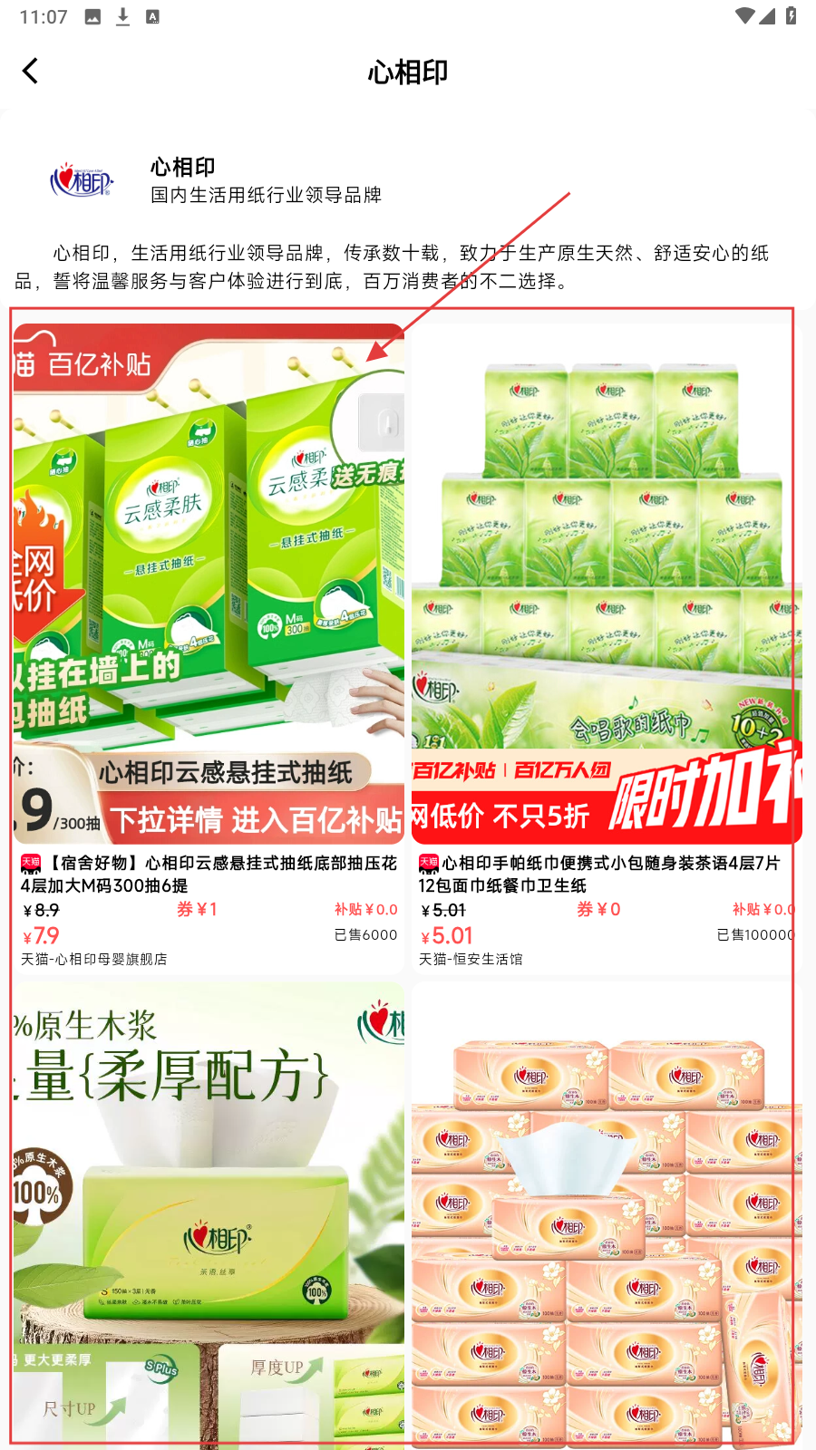 3、在商品列表,挑心仪心相印纸巾,进入详情页了解信息。