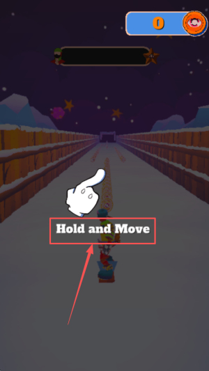 1、在游戏开始界面,按住并拖动角色向前移动。