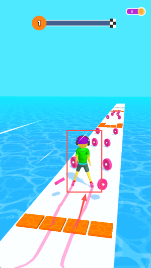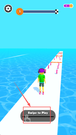 1、开启滑行之旅:进入游戏熟悉轮滑操控方式,了解掉水规则与轮滑切换机制,明确躲避障碍、抵达终点的目标,开启水上跑酷。