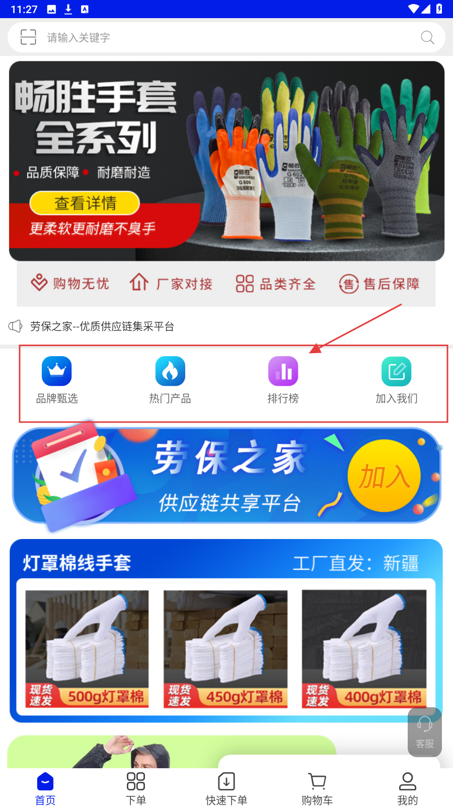 1、想找劳保手套等产品,可点【排行榜】,从热销榜单选优质商品,了解市场热门。