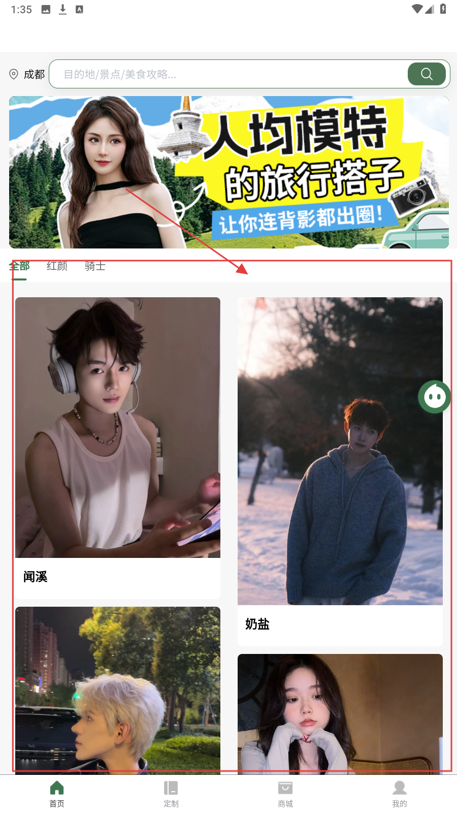 3、切换到【首页】,逛【人均模特的旅行搭子】板块,找合拍旅伴。