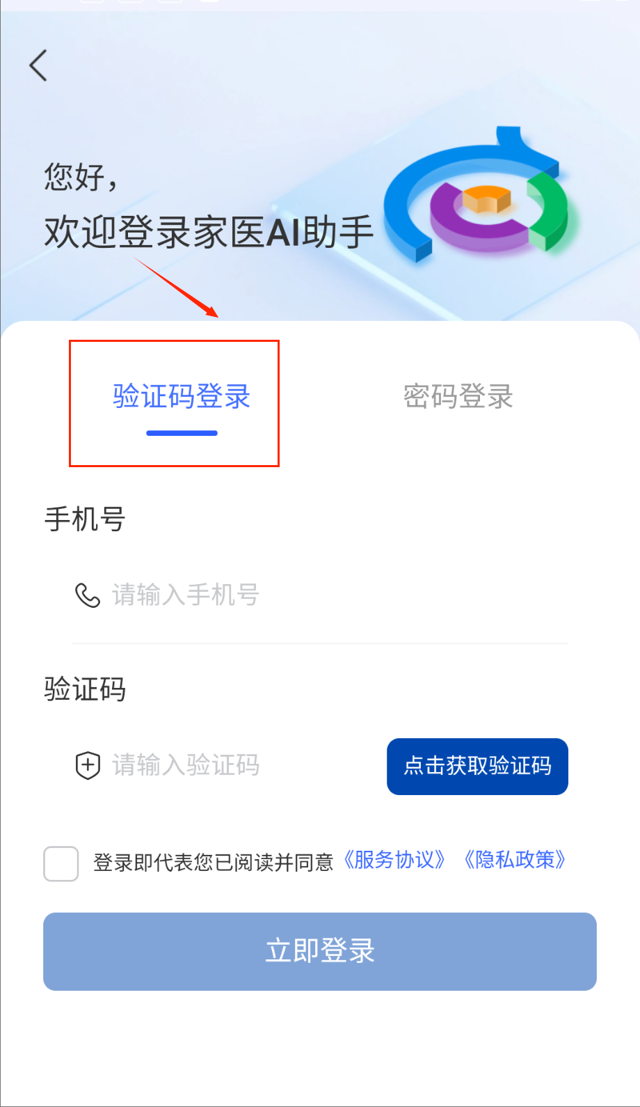 2、选验证码登录的话,输入手机号后点获取验证码。收到短信后及时填写验证码,那个蓝色登录按钮很醒目。