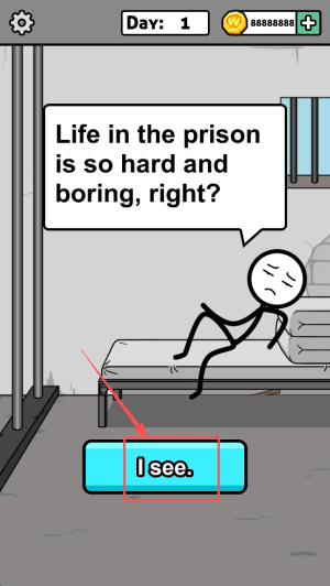 1、开启营救之旅:进入游戏了解火柴人入狱背景与单词解谜规则,明确通过答题助其重获自由的目标。