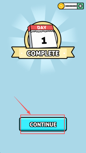 4、点击“CONTINUE”按钮,完成一天的挑战并继续游戏。