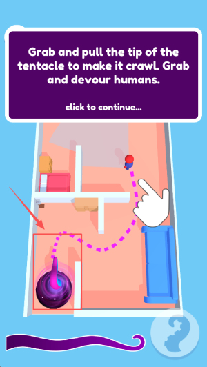 3、拖动触手,引导其避开障碍并吞噬人类。