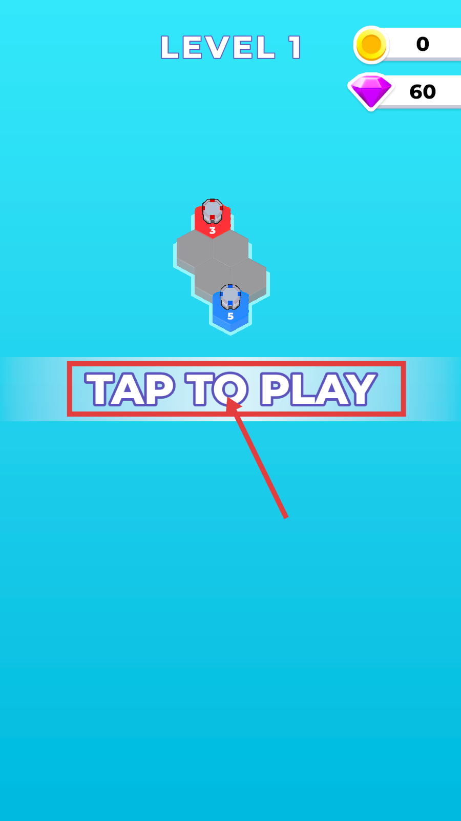 1、进入【LEVEL-1】,点击【TAP-TO-PLAY】开启对战,直面红-3与蓝-5单位的攻防对决。