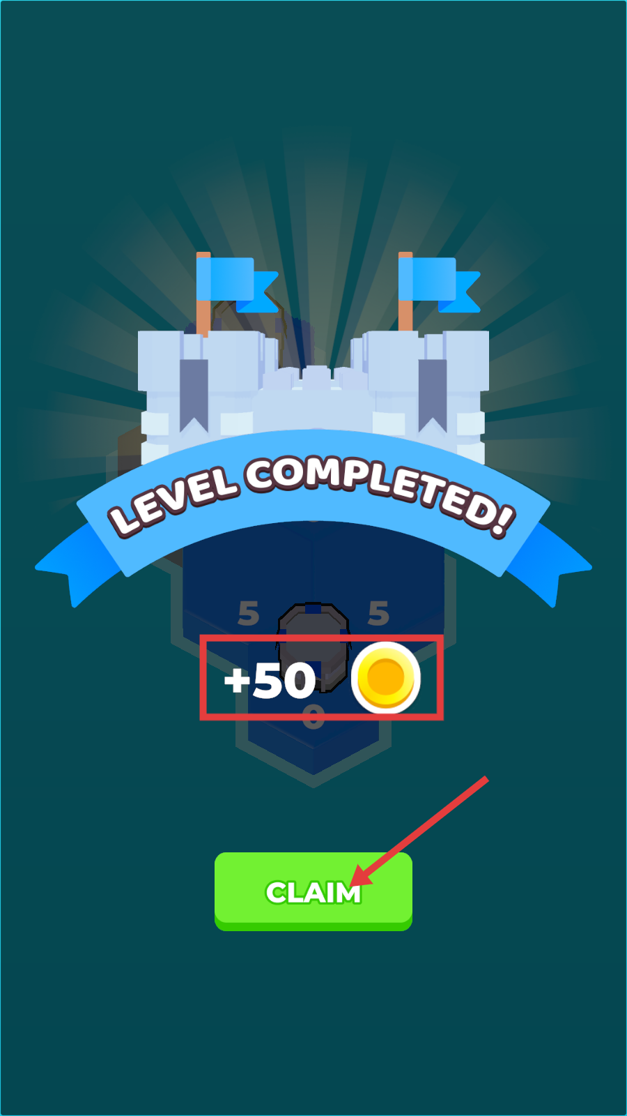 4、通关后点击【CLAIM】,领取【+50-金币】奖励,积累资源为后续关卡强化单位蓄力。