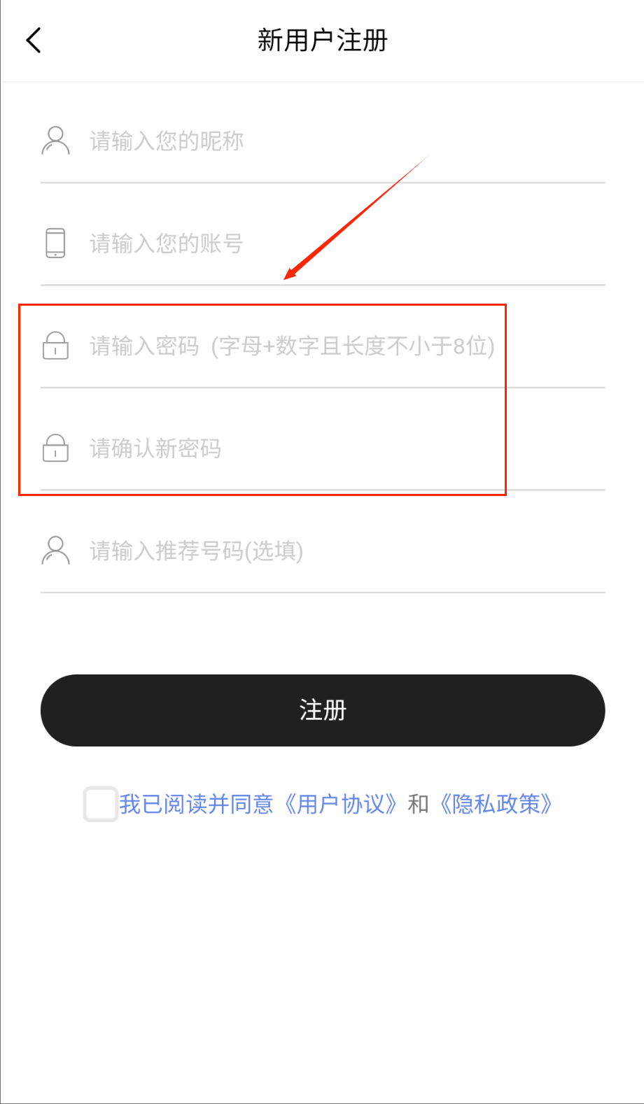 2、按照提示依次填写昵称和账号信息,再设置一个字母加数字组合的安全密码记得要输入两遍哦。