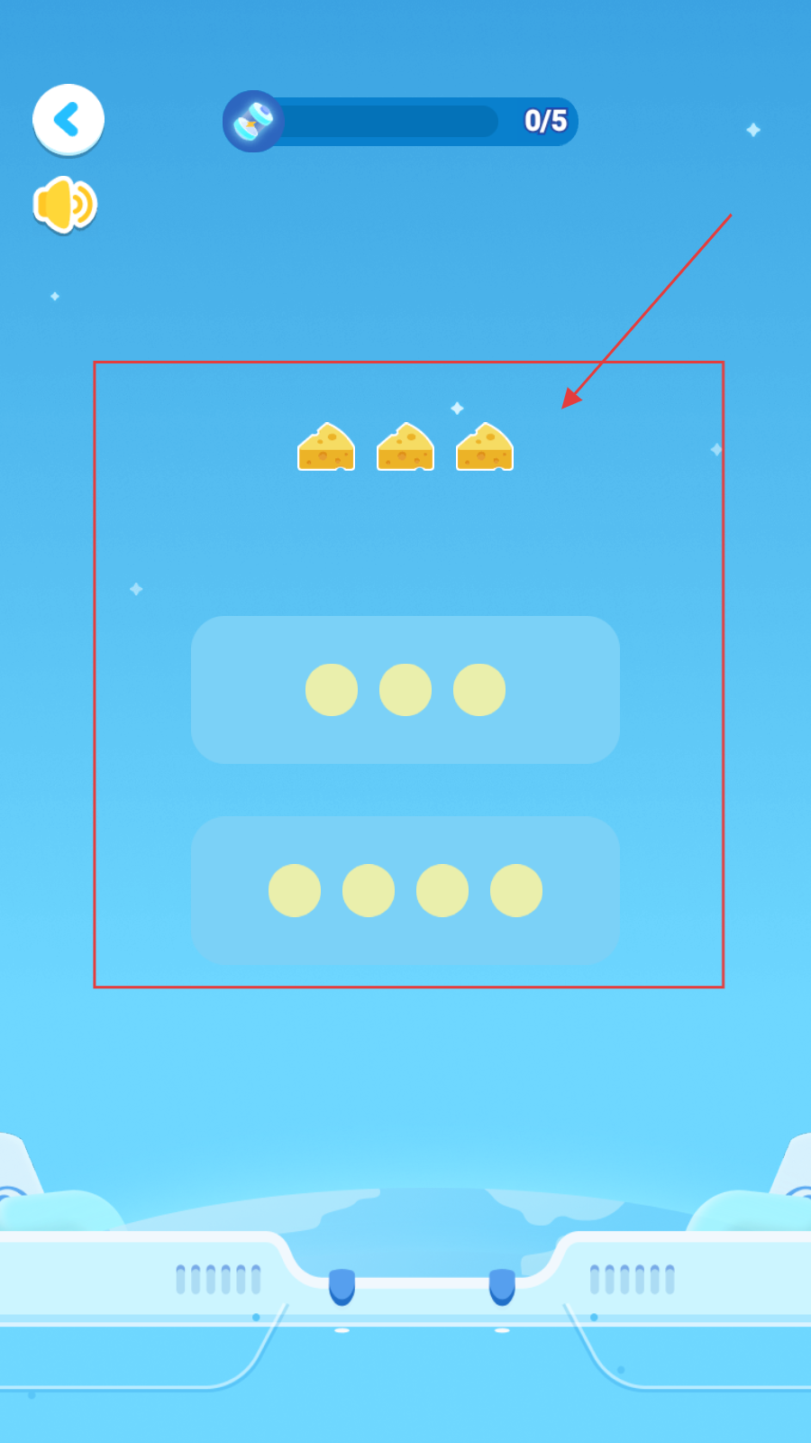 2、进入关卡,数清上方【奶酪】数量,匹配下方相同数量【黄圆】区域。