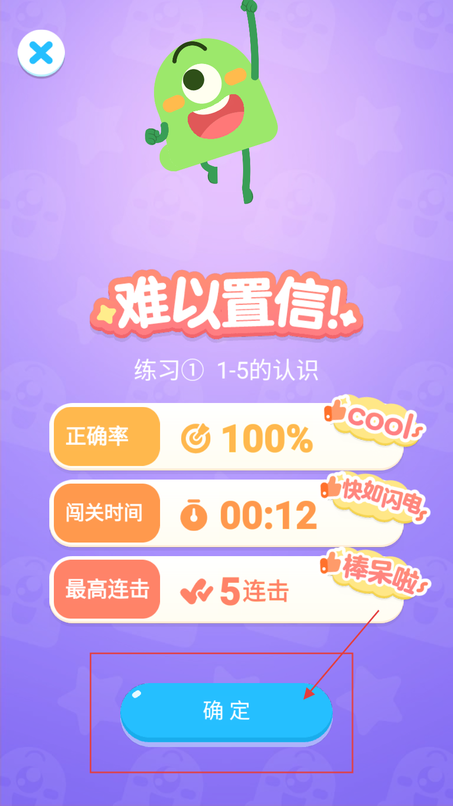 4、完成练习,查看【正确率】【闯关时间】等,点【确定】结算,可反复巩固。