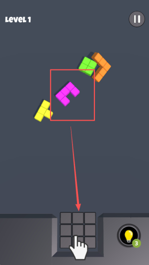 2、匹配彩色立方体:观察屏幕中立方体的颜色与位置,将相同颜色的立方体配对,触发消除效果,完成当前关卡的匹配任务。