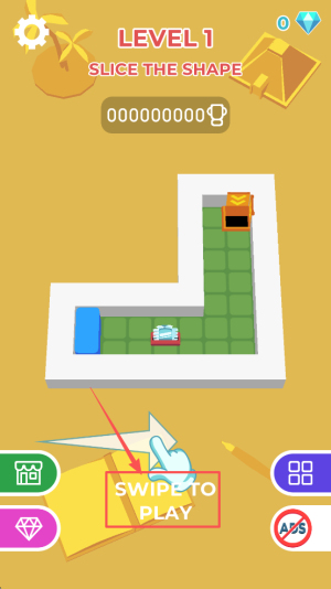 2、理解游戏目标:观察关卡布局,了解需要切片的形状和目标位置。