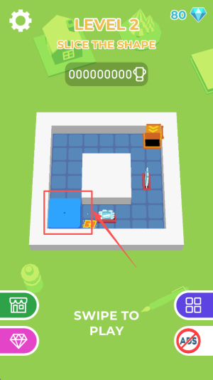 3、进行切片操作:按照游戏指示,正确地切片形状,使其能够到达目标位置。