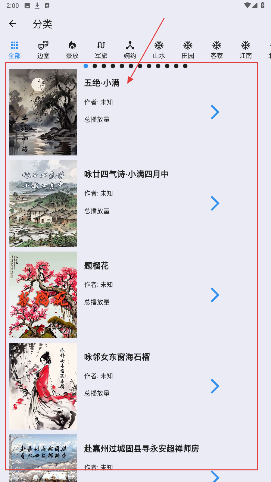 2、在分类页,选古诗(如【题榴花】),进入详情页查看内容。
