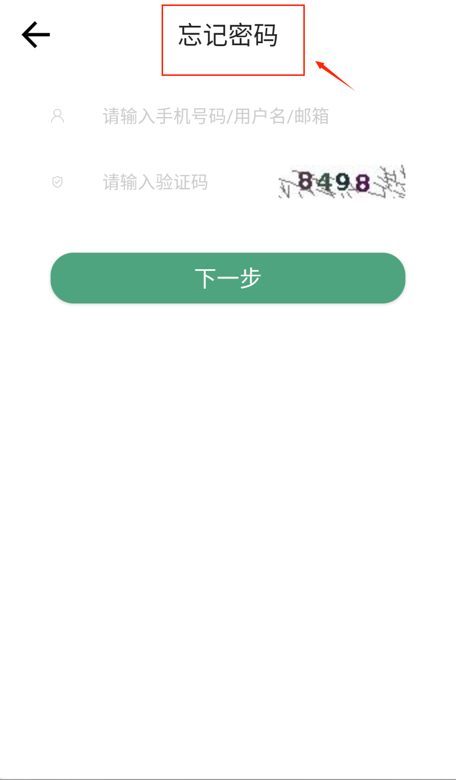 3、如果忘记密码可以点击忘记密码进入找回页面,按要求输入用户名和验证码7654后点击下一步。