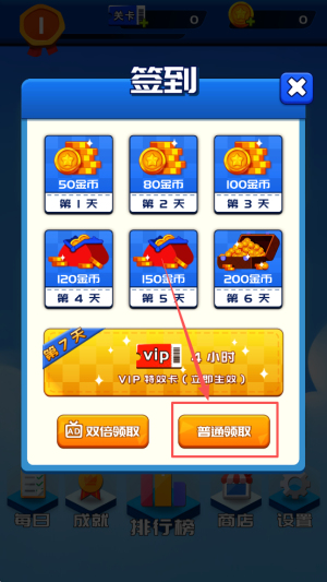 1、每日签到:点击“普通领取”按钮,获取每日签到奖励。