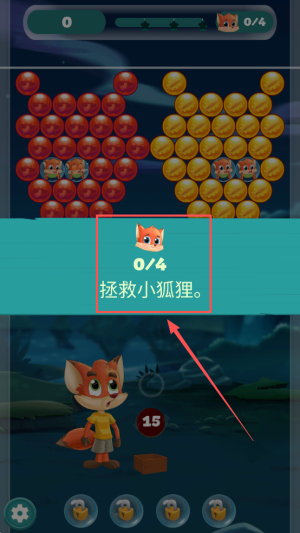 3、拯救角色:按照提示,点击屏幕射击泡泡,拯救被泡泡困住的角色。