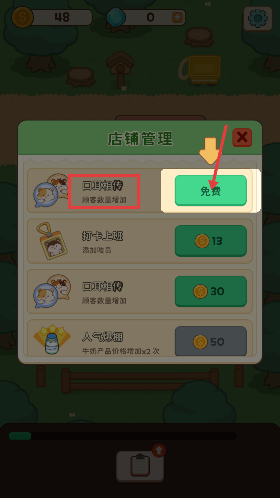 3、店铺管理点【口耳相传-免费】,增加顾客数量。