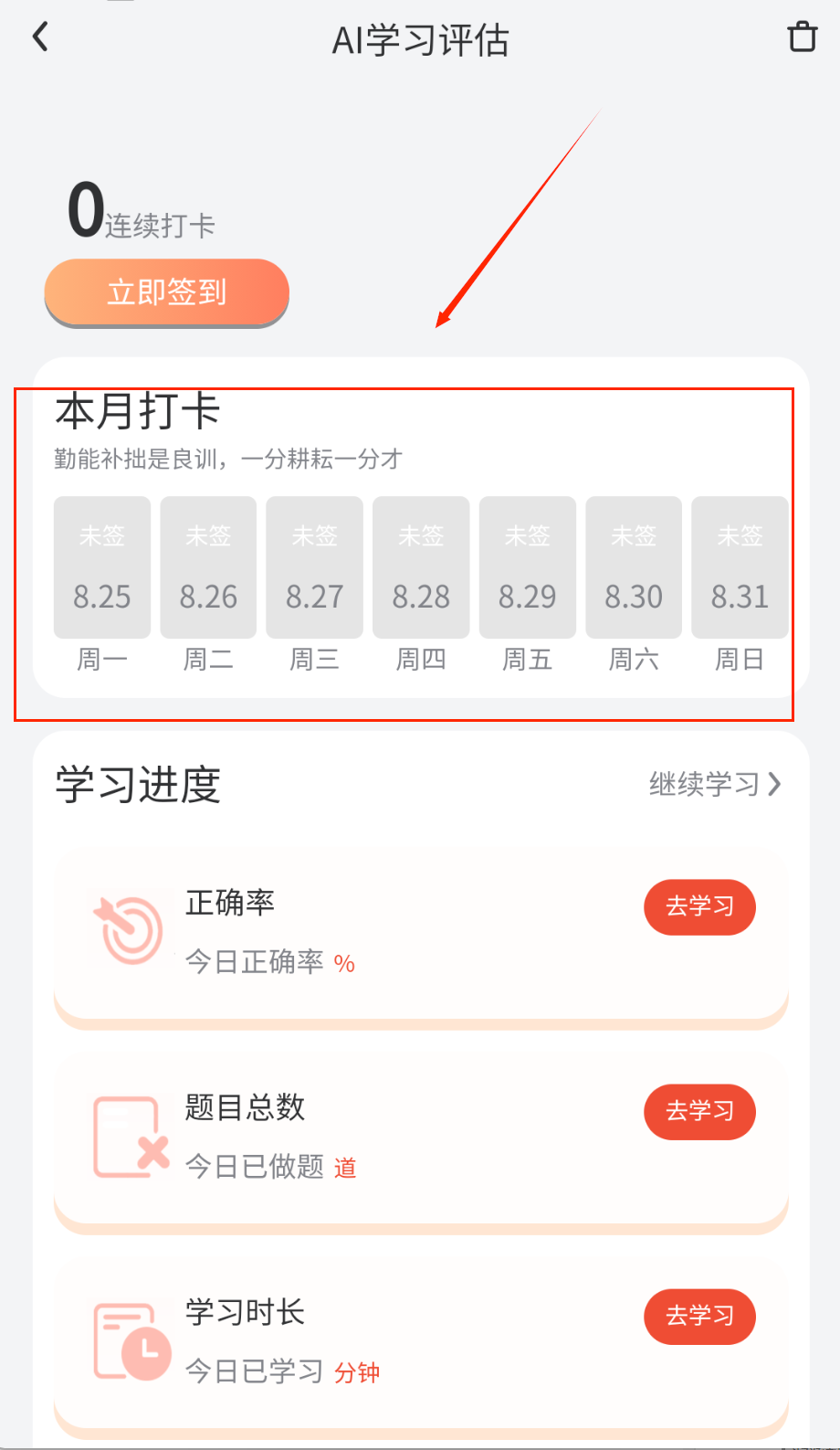 4、保存学习计划后系统会自动生成可视化的日历视图,每天推送学习任务提醒,并详细记录每个任务的完成情况。