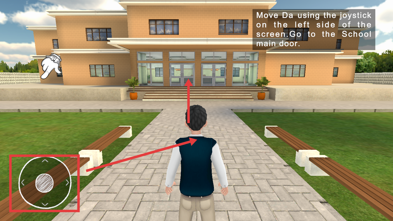 2、用左侧摇杆移角色,按指引去学校正门。