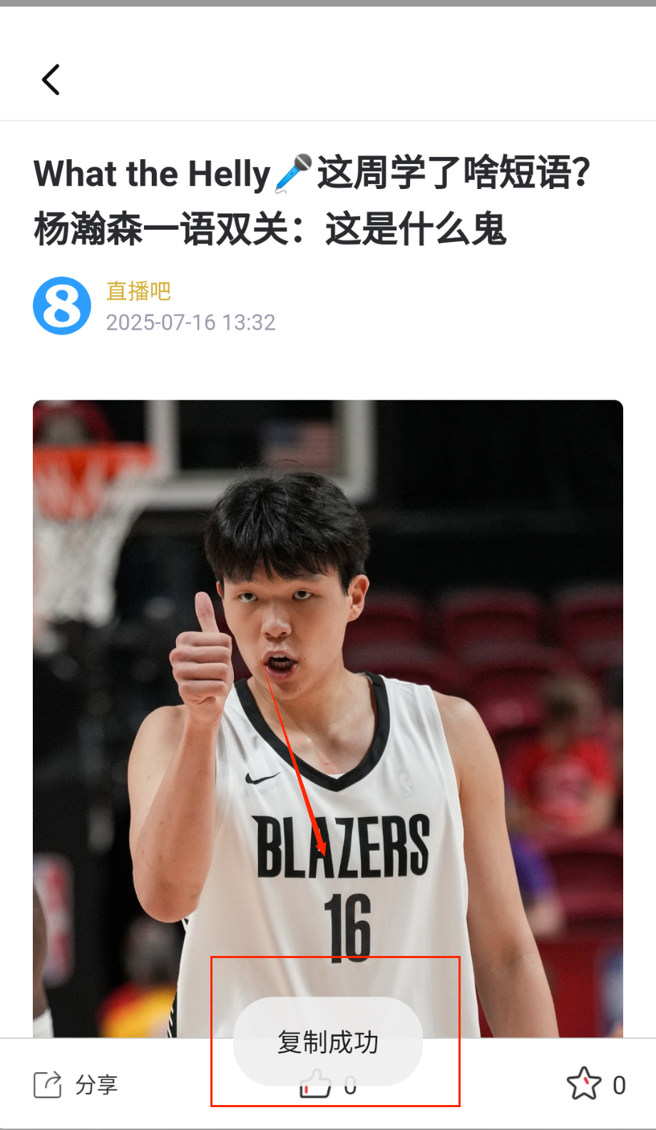 2、滑动至文章底部可以看到一排功能按钮,点击蓝色的"分享"图标会弹出分享菜单,提供复制链接、生成海报以及直接分享。